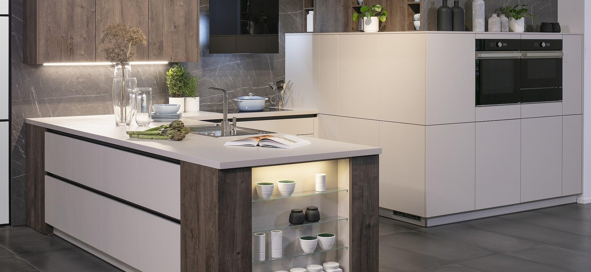 Für Rechtshänder ist diese Aufteilung allemal besser, denn sinnvoll für einen reibungslosen Arbeitsablauf in der Küche ist ein Arbeitsdreieck, bei dem Vorratshaltung (Schränke und Kühl-/Gefrierschrank), Vorbereiten der Lebensmittel (Spüle und Arbeitsflächen) sowie Kochen und Backen (Herd, Ofen und Abstellflächen) von links nach rechts aufeinander folgen. Bei Linkshändern sollten die Arbeitsbereiche natürlich genau andersherum angeordnet sein.